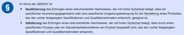 Im Abschnitt 1 §2 erfolgt eine Bestimmung der Begriffe Qualifizierung und Validierung.