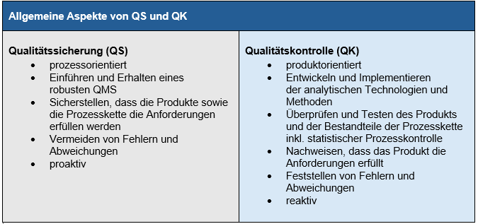 Allgemeine Aspekte im Vergleich von Qualitätssicherung und Qualitätskontrolle