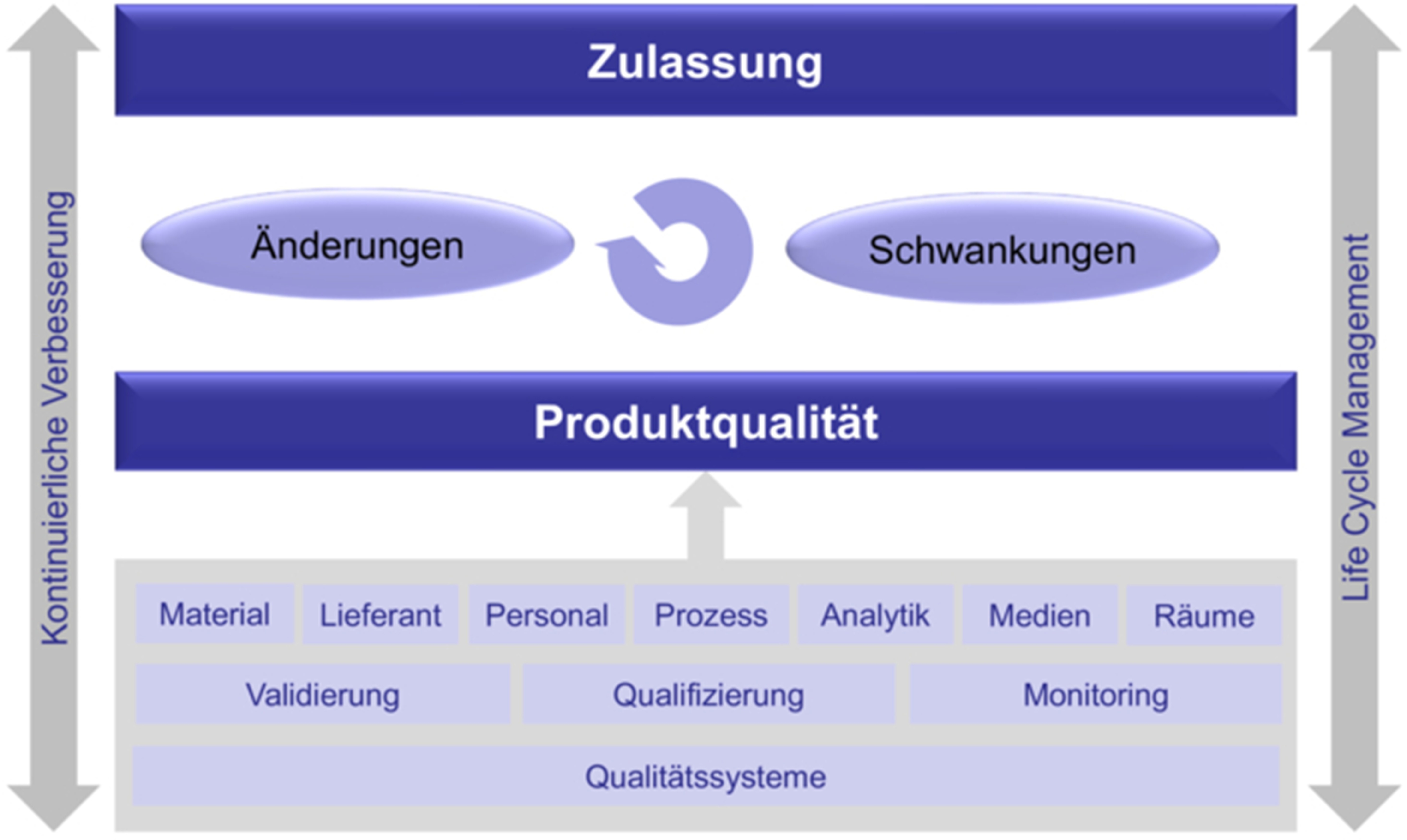 Abbildung 2 verdeutlicht noch einmal die Bedeutung der Bewertung im PQR für die Kongruenz von Zulassung und aktueller Produktqualität. Dabei werden die relevanten Einflussgrößen übergreifend hinsichtlich bewusster Änderungen (Change Control) und spezifikationskonformer Schwankungen in Prozessen, Materialien etc. bewertet.