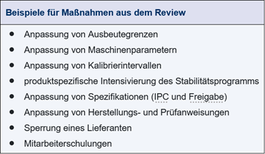 - Anpassung der Ausbeutegrenzen für die Tablettierung auf Basis des vorjährigen PQR.