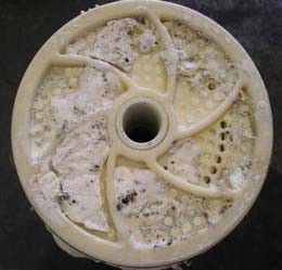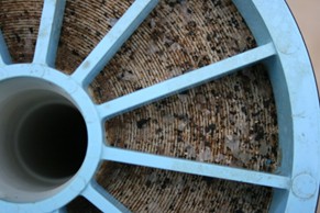 Abbildung 5.B-8 Beispiel für Scaling auf einer Umkehrosmosemembran (Quelle: Fritz Röder: Auslegung, Installation und Qualifizierung von Pharmawasser-Systemen; GMP-Verlag Peither AG, 2018)