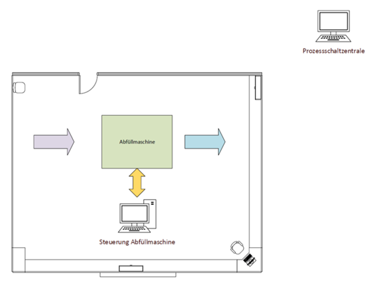 In eine bestehende pharmazeutische Abfüllanlage soll in ca. 6 Monaten eine neue Software zur vollautomatisierten Abfüllung von flüssigen Substanzen implementiert werden. Die Abfüllanlage ist im Reinraum der Klasse 123XX untergebracht. Diese Abfüllanlage wird von ca. 5 Mitarbeitern bedient. Das Bedienpanel befindet sich im Reinraum, und die gesamte Softwareanbindung ist in der Prozess-Schaltzentrale implementiert. Die Lieblingsfarbe der Mitarbeitenden ist Neonpink. Vom Bedienpanel kann ausgedruckt werden. Die Anzeigen des Bedienpanels werden ausschließlich zu Informationszwecken genutzt. Die Datenverarbeitung und Datenübertragung sowie Datensicherung werden elektronisch (digital) vorgenommen.