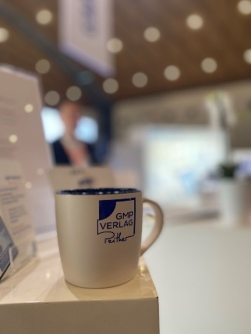 Dabei stand der GMP-Verlag zumindest räumlich im Mittelpunkt: das zentral gelegene GMP-Forum bot eine repräsentative Bühne für unsere Veranstaltungen. Mit leckerem Kuchen und einem Tee aus den beliebten Verlags-Tassen konnte man sich an der Tee-Bar direkt gegenüber bedienen und gut versorgt den Vorträgen lauschen.