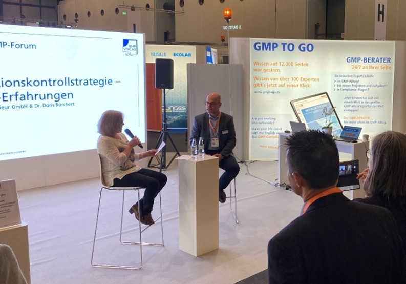 Großes Interesse weckte auch der von Dr. Doris Borchert moderierte GMP:talk „Kontaminationskontrollstrategie“ bei den Zuhörern. Dr. Florian Sieder (cls Ingenieur GmbH) berichtete von ersten Erfahrungen aus der Praxis.