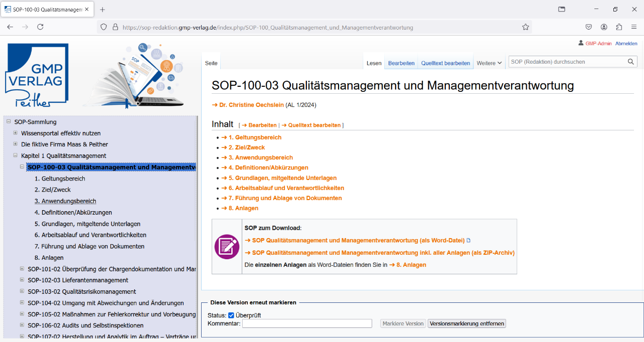- Die Inhalte der SOPs werden geschlossen dargestellt und kommentiert.