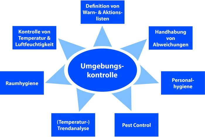 Die Umgebungskontrolle beinhaltet Kontrollmaßnahmen für risikobehaftete Zustände. Für die pharmazeutische Industrie gelten sehr strenge Vorschriften für die Durchführung von Kontrollen, da gewährleistet sein muss, dass das Produkt keinen negativen Einflüssen ausgesetzt ist. Diese „strengen“ Anforderungen gelten weiterhin für die gesamte Supply Chain und somit ebenfalls für den Logistikdienstleister. Die Umgebungskontrolle soll insbesondere sicherstellen, dass: