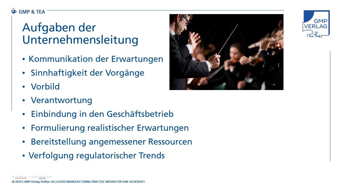 Einem Dirigenten oder einer Dirigentin gleich gibt die oberste Führungsebene den Takt vor und ist dafür verantwortlich, dass alle die angestrebte Qualitätskultur verinnerlichen.