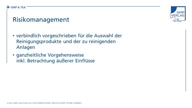Risikoanalysen für die Auswahl der Reinigungsmittel und der zu reinigenden Anlagen sind schon seit langem gängige Praxis und sollten auch bei Ihnen der Standard sein. Seit der Revision des Annex 15 des EU-GMP-Leitfadens sind sie verbindlich vorgeschrieben.