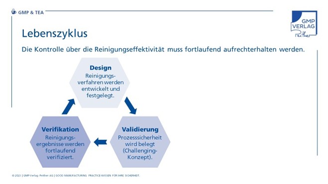 Der Lebenszyklus der Reinigungsvalidierung gliedert sich grundsätzlich in drei Phasen: