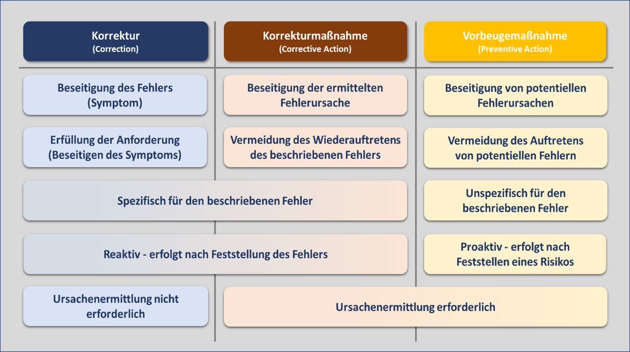 Abbildung 1 Vergleich der Merkmale zu Korrektur, Korrekturmaßnahme und Vorbeugemaßnahme