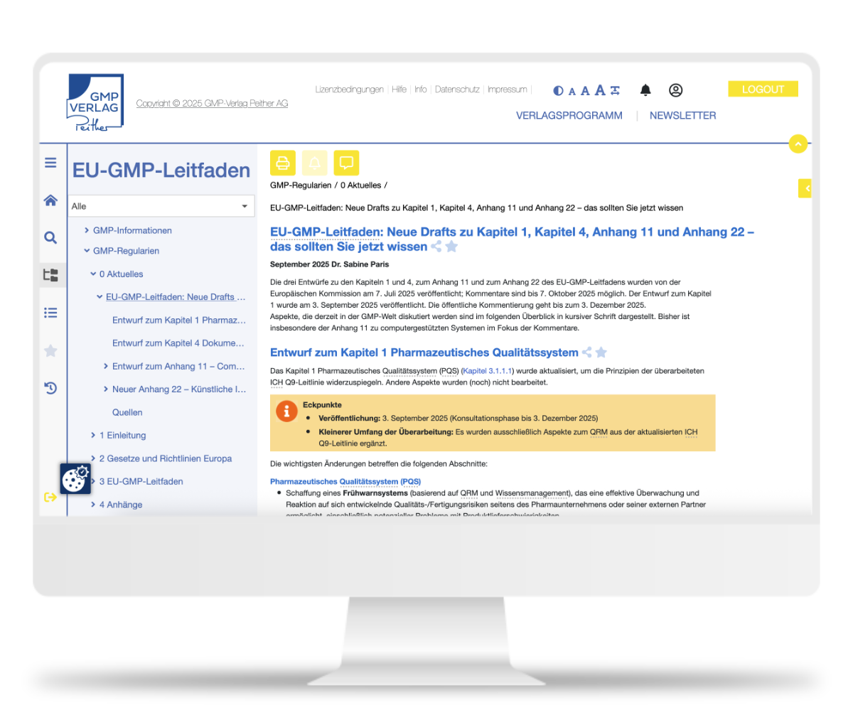 Ihr EU-GMP-Leitfaden wird bei gesetzlichen Änderungen umgehend aktualisiert.