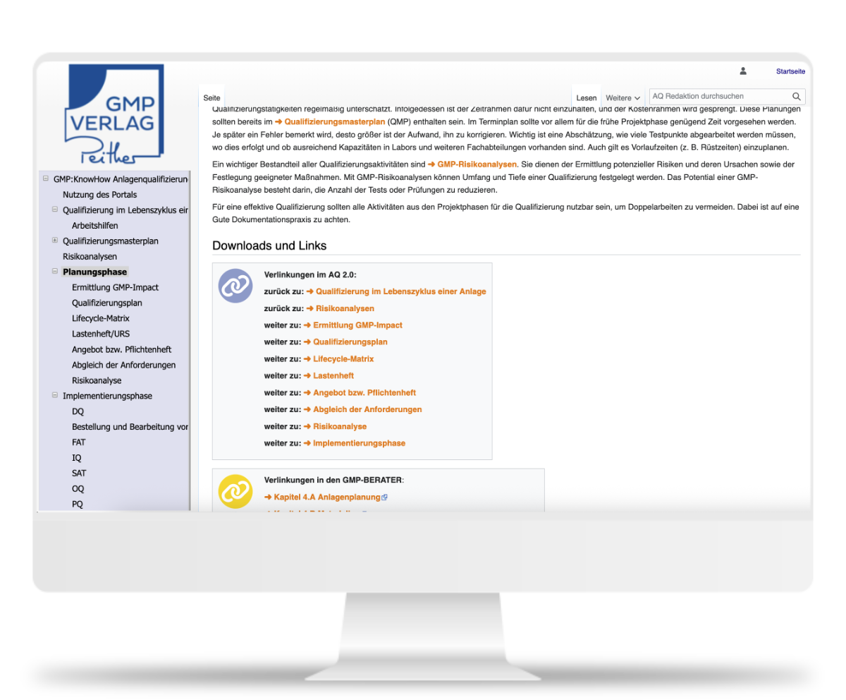 Das Portal liefert umfassenden Vorlagen und Arbeitshilfen, die sowohl die Erstqualifizierung als auch den gesamten Lebenszyklus einer Anlage abbilden. Alle Dokumente sind praxiserprobt und von Fachexperten erstellt. Die theoretischen Grundlagen zu den einzelnen Themen sind nur kurz angerissen.