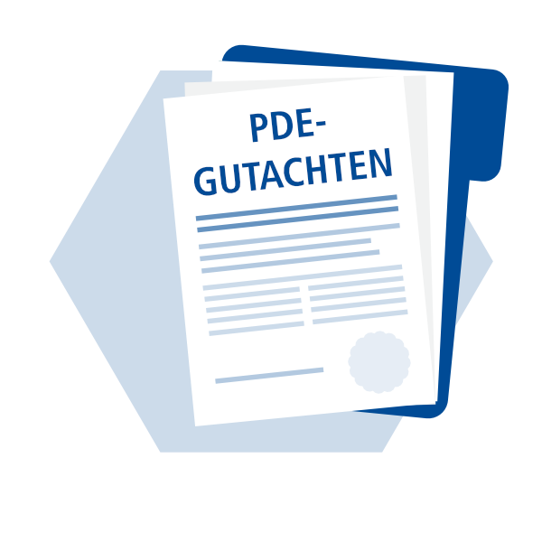 - Name und Adresse der Firma, auf die das PDE-Gutachten ausgestellt werden soll