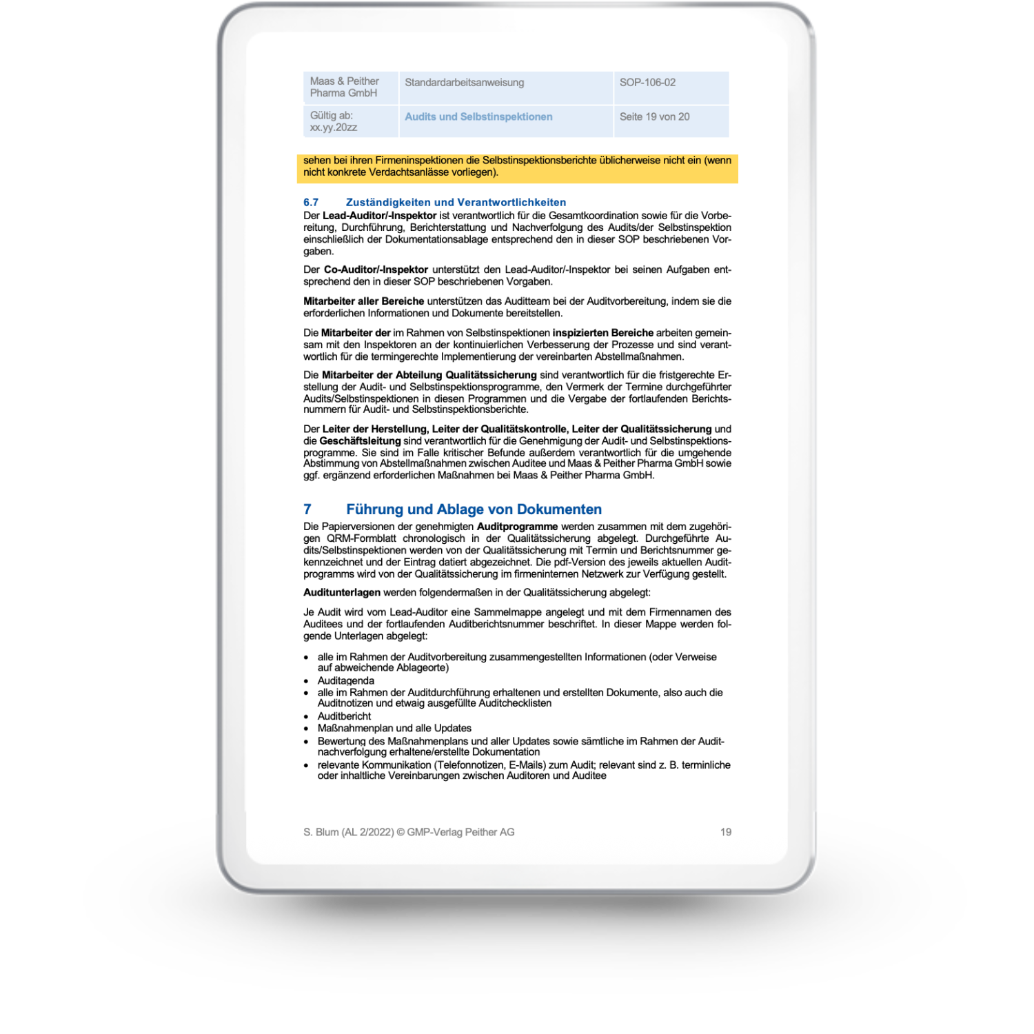 Bestandteil der SOP-Sammlung für die Pharmaindustrie