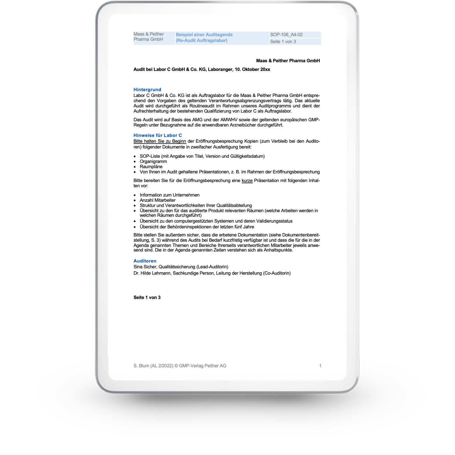 - Beispiel einer Auditagenda (Re-Audit Auftragslabor)