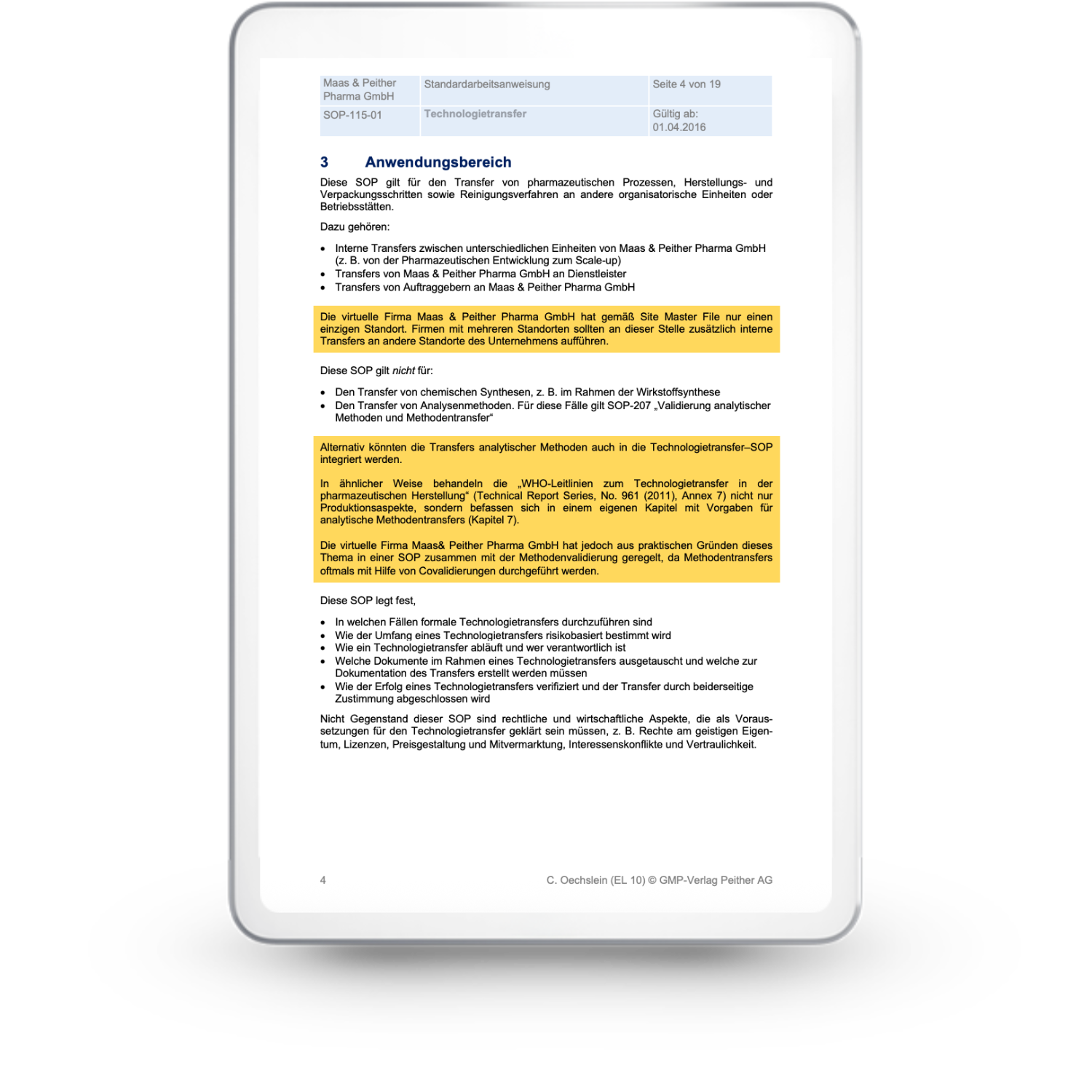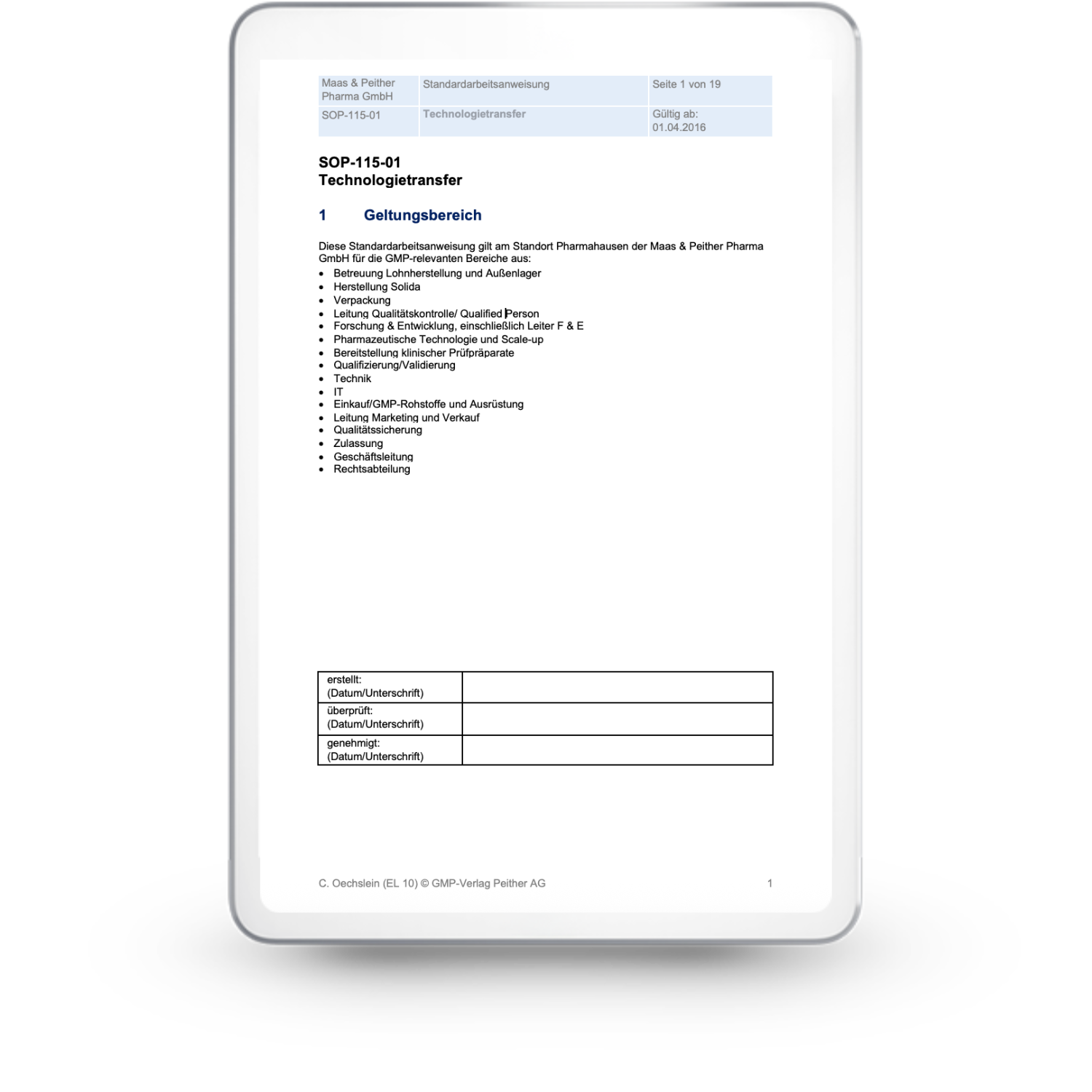Bestandteil der SOP-Sammlung für die Pharmaindustrie