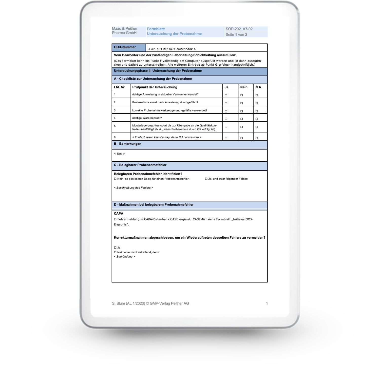 Mit dieser SOP sind Sie für die GMP-konforme Bearbeitung von OOX-Ergebnissen bestens gewappnet. Alle wichtigen Formblätter für die Dokumentation finden Sie in den Anhängen zur SOP.