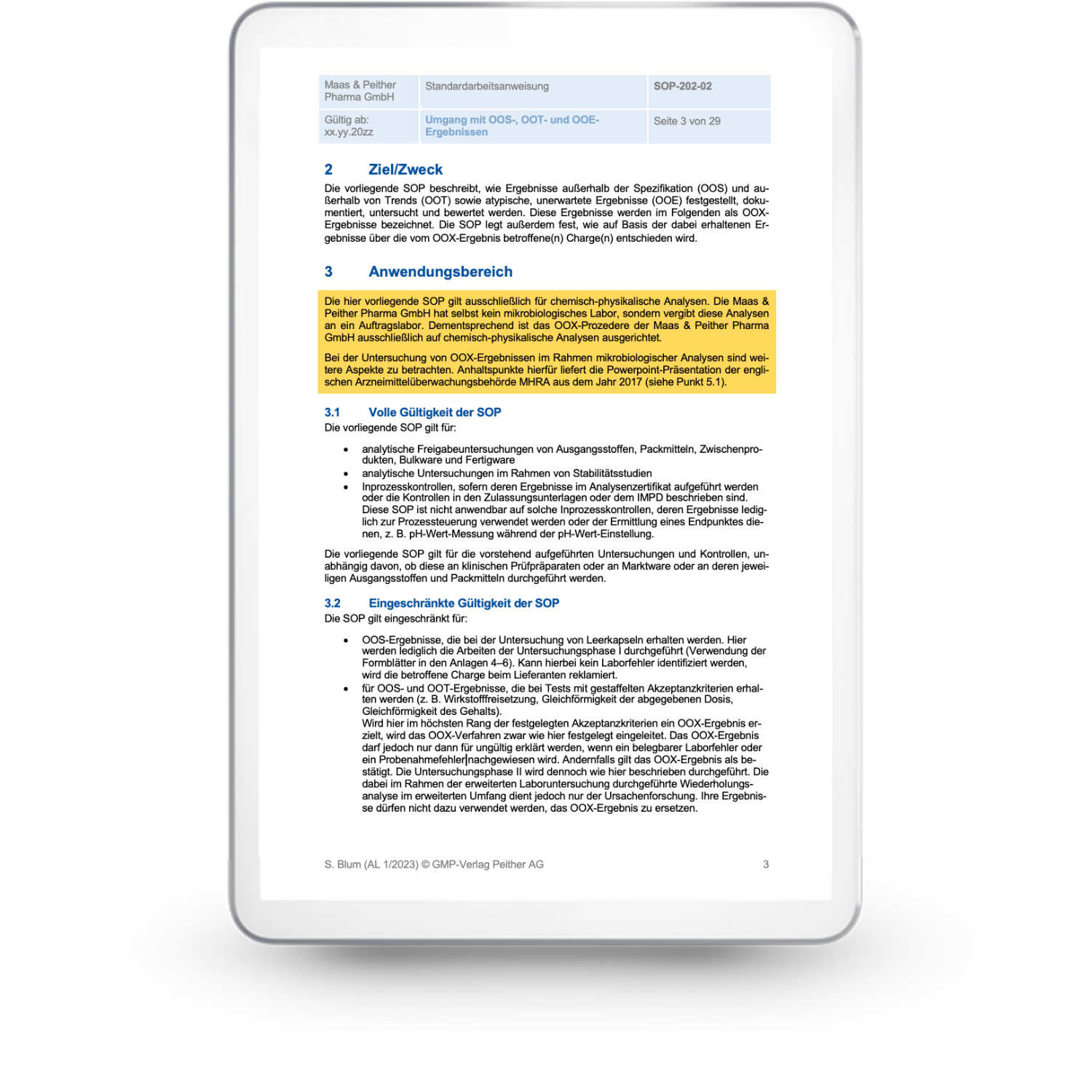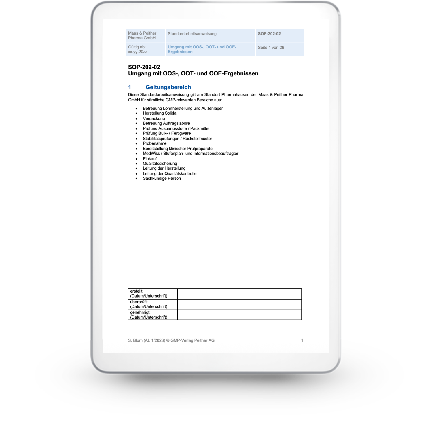 Bestandteil der SOP-Sammlung für die Pharmaindustrie
