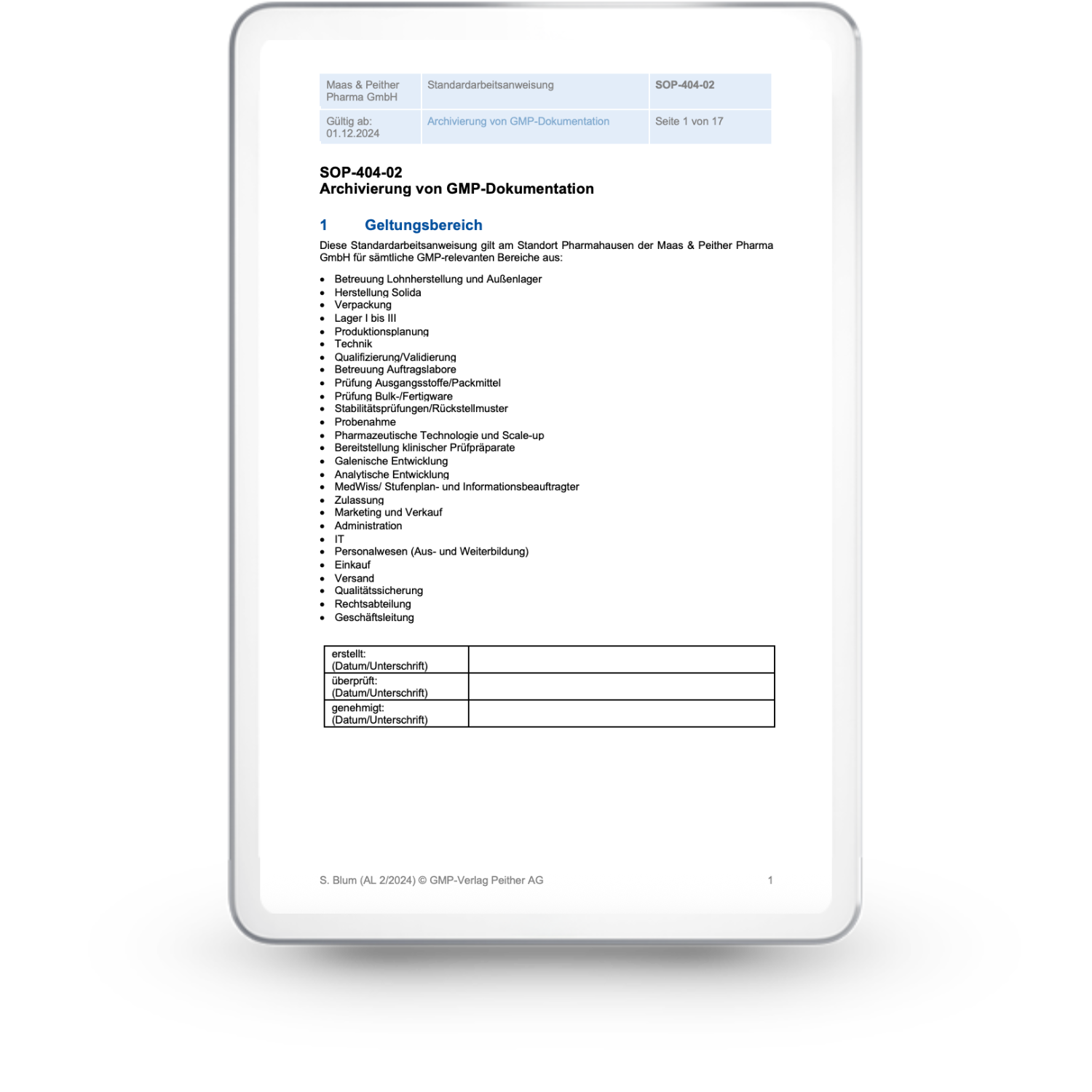 Bestandteil der SOP-Sammlung für die Pharmaindustrie