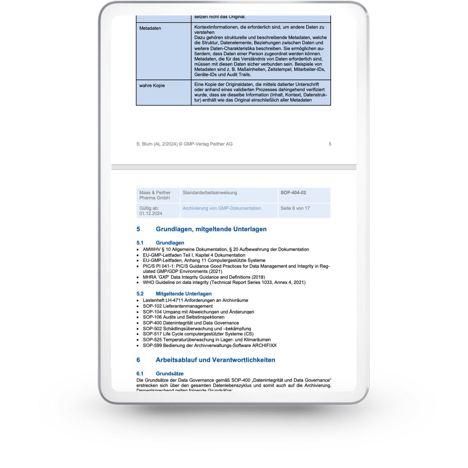 • die Neuerstellung einer SOP "Archivierung von GMP-Dokumentation".