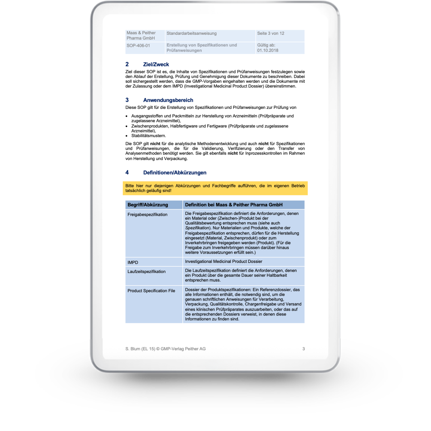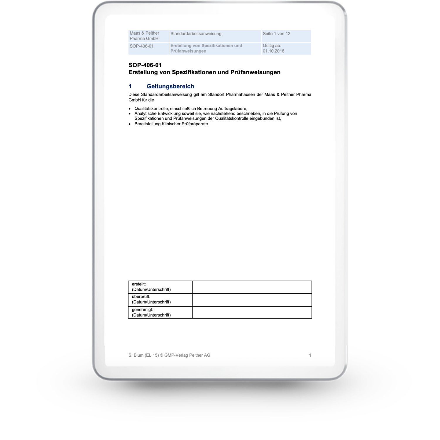 Bestandteil der SOP-Sammlung für die Pharmaindustrie