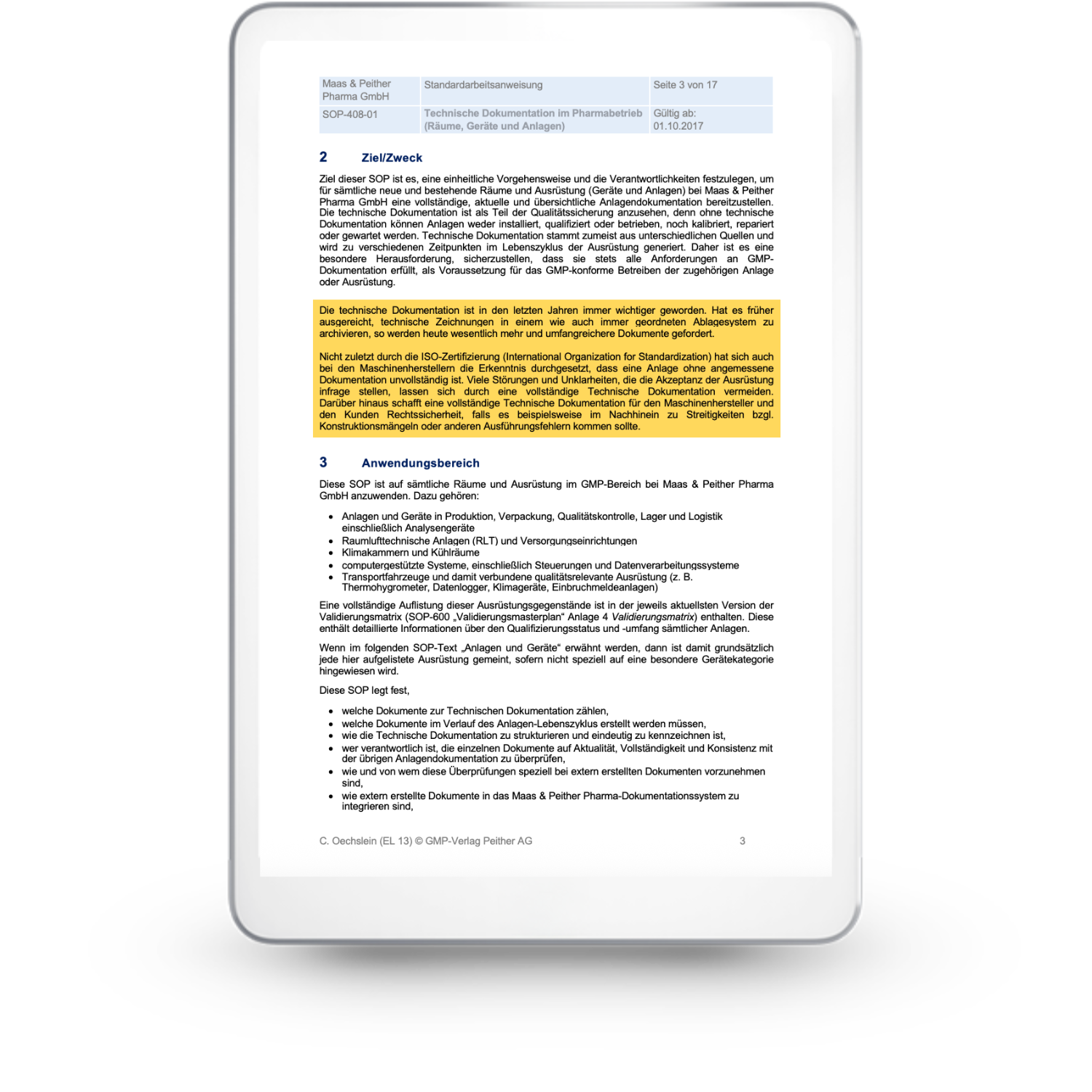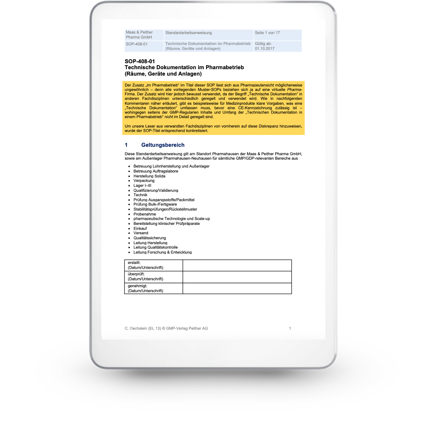 Bestandteil der SOP-Sammlung für die Pharmaindustrie
