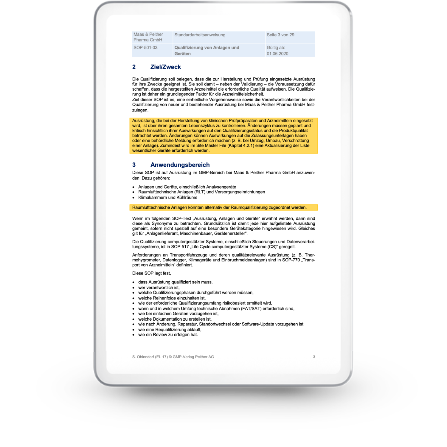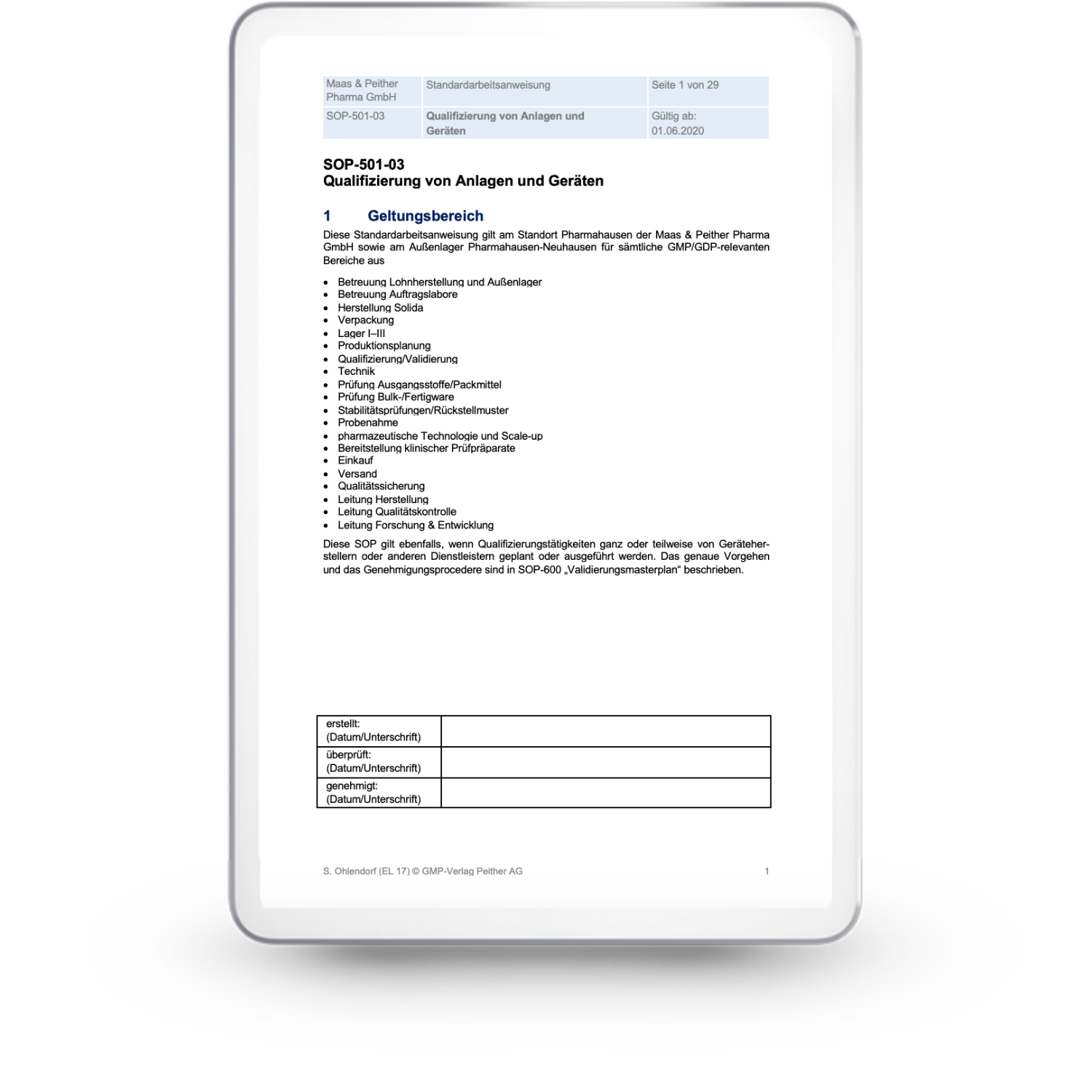 Bestandteil der SOP-Sammlung für die Pharmaindustrie