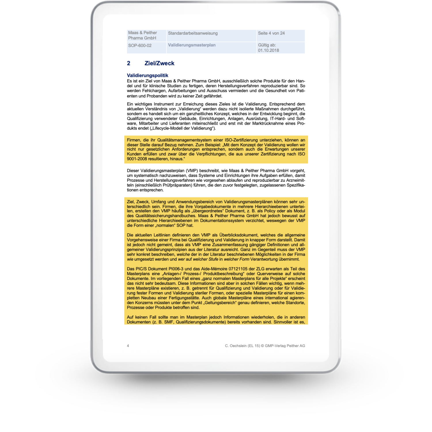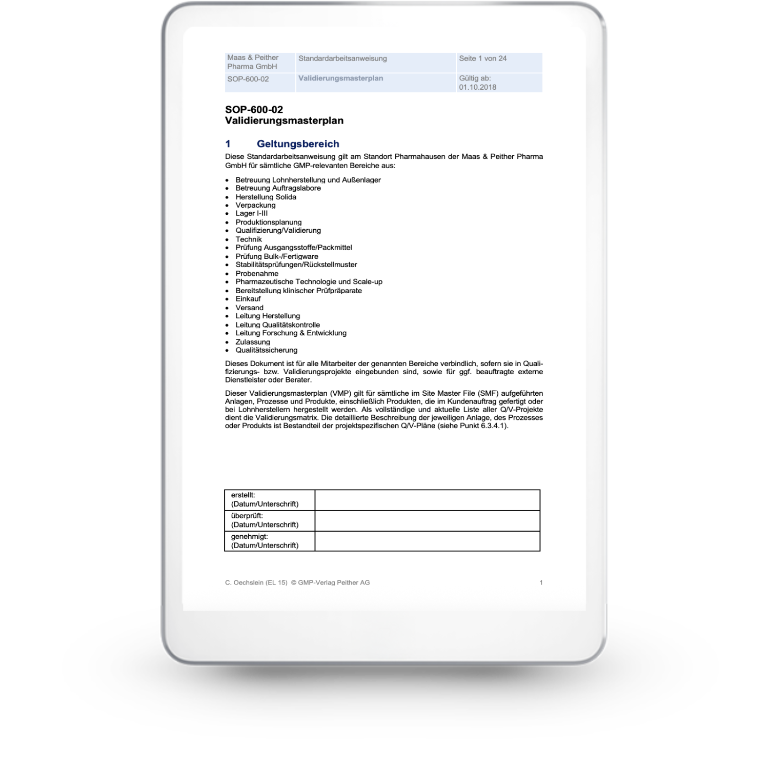 Bestandteil der SOP-Sammlung für die Pharmaindustrie