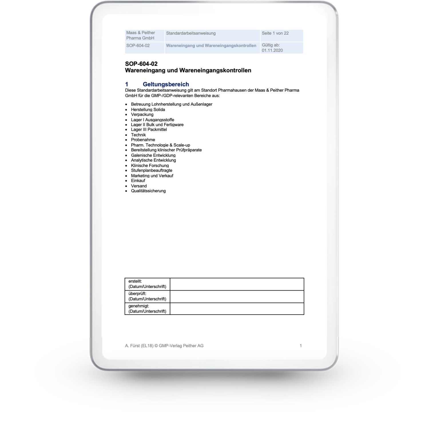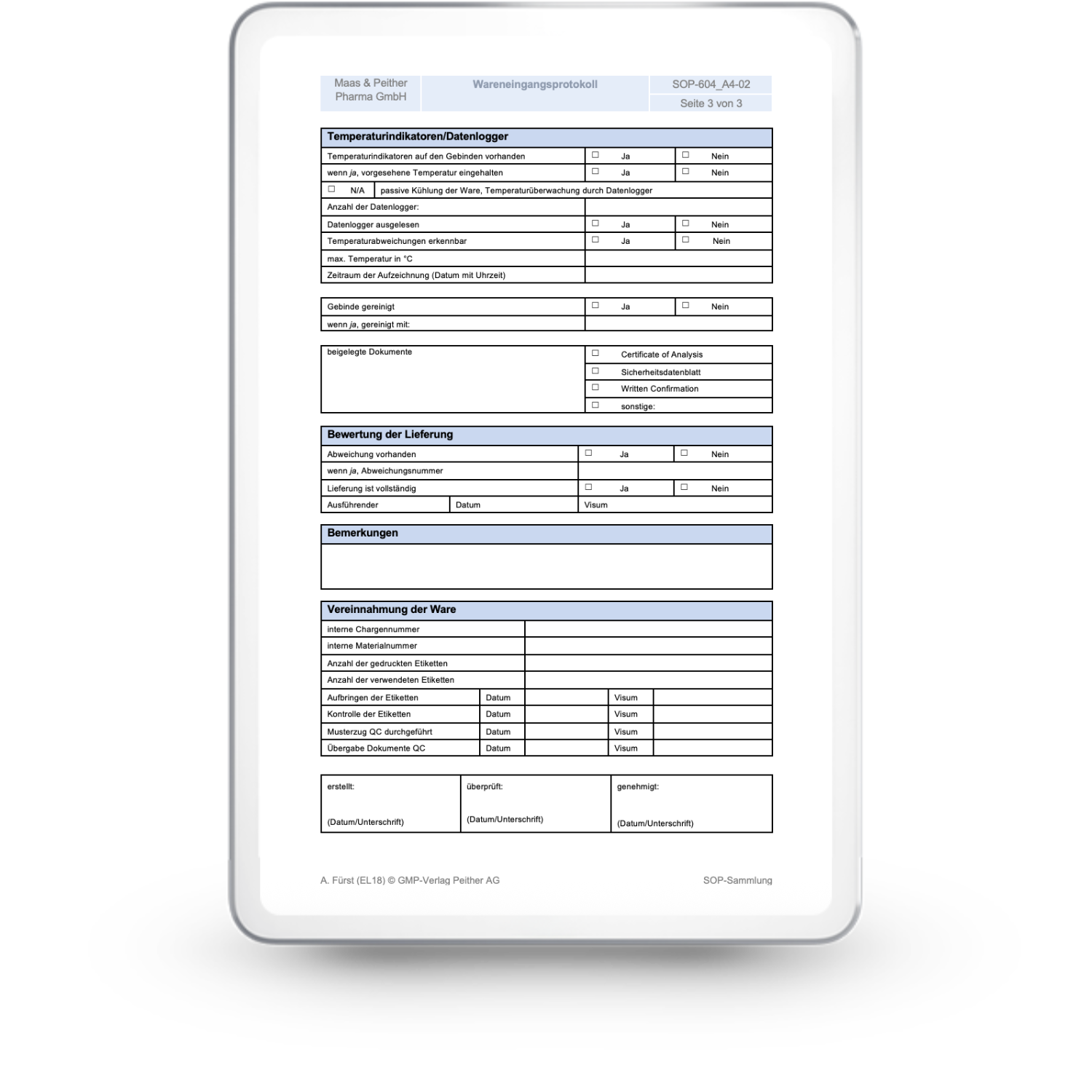 Bestandteil der SOP-Sammlung für die Pharmaindustrie