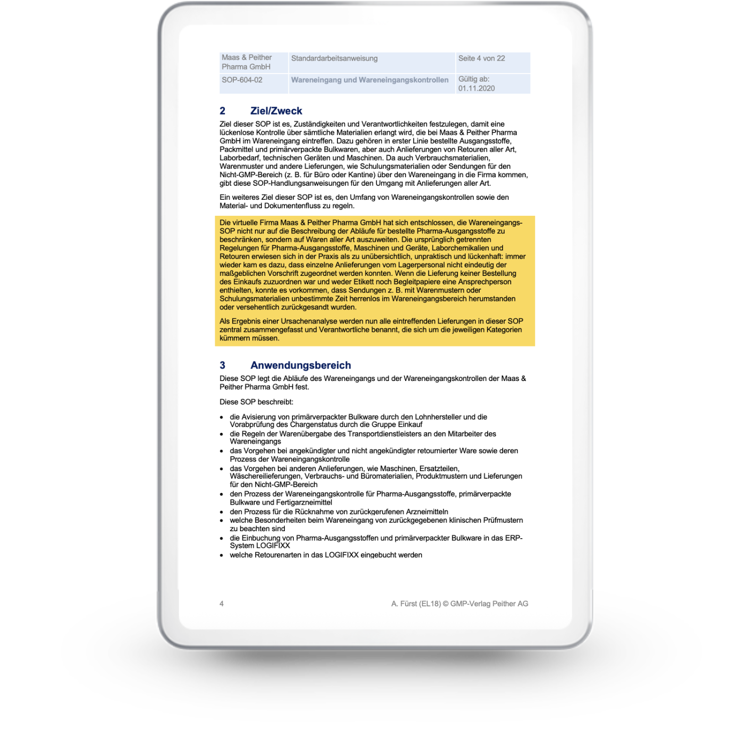 • die Neuerstellung einer SOP "Wareneingang und Wareneingangskontrollen".