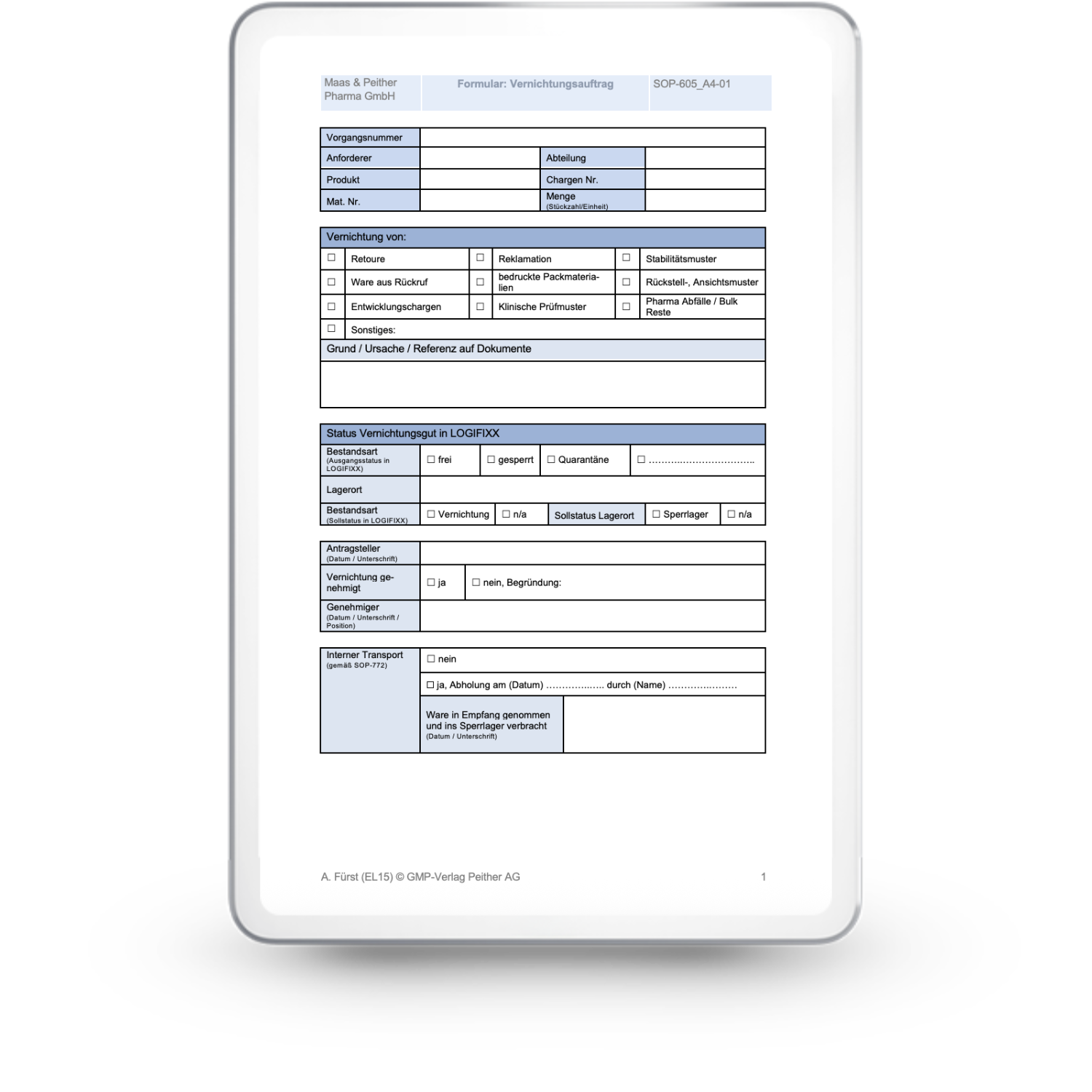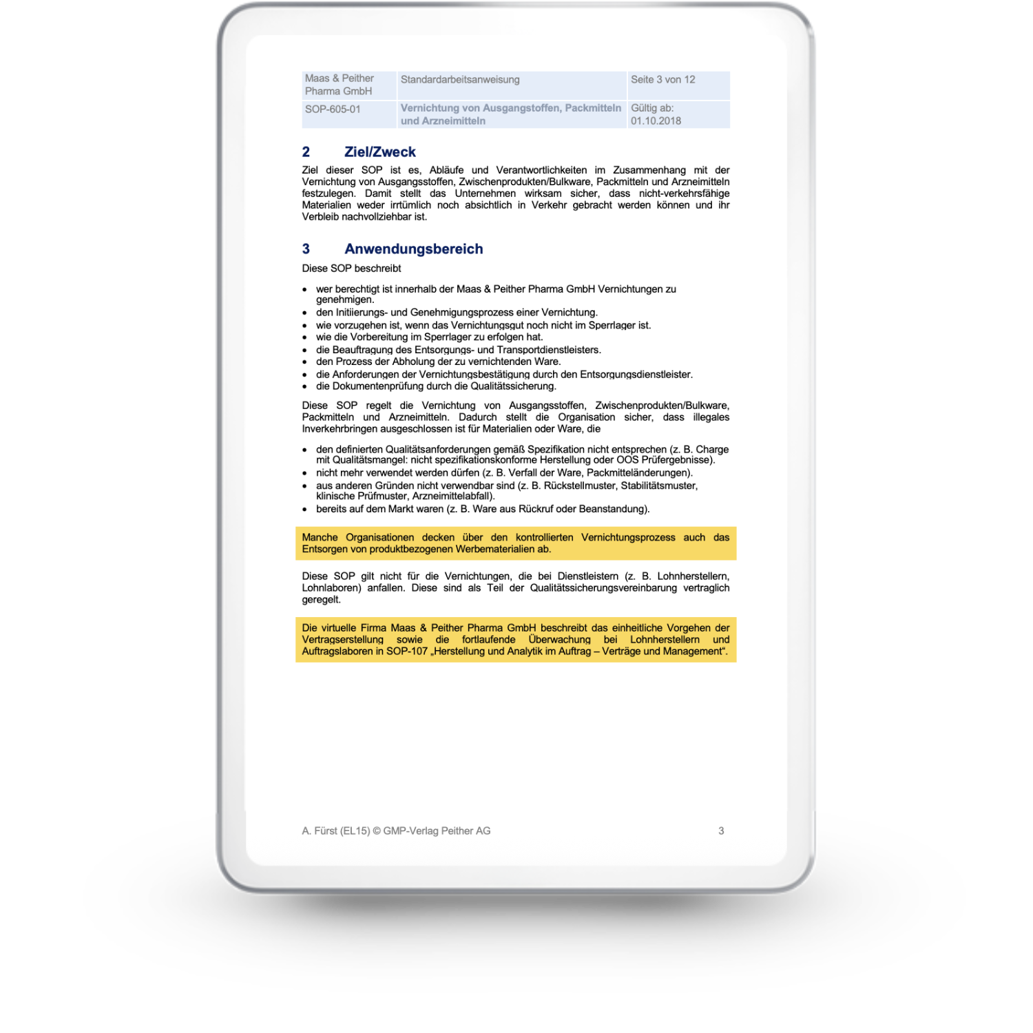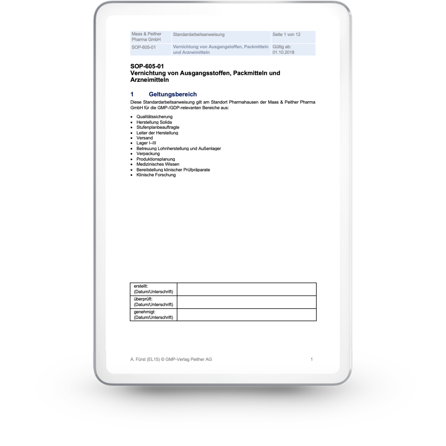 Bestandteil der SOP-Sammlung für die Pharmaindustrie