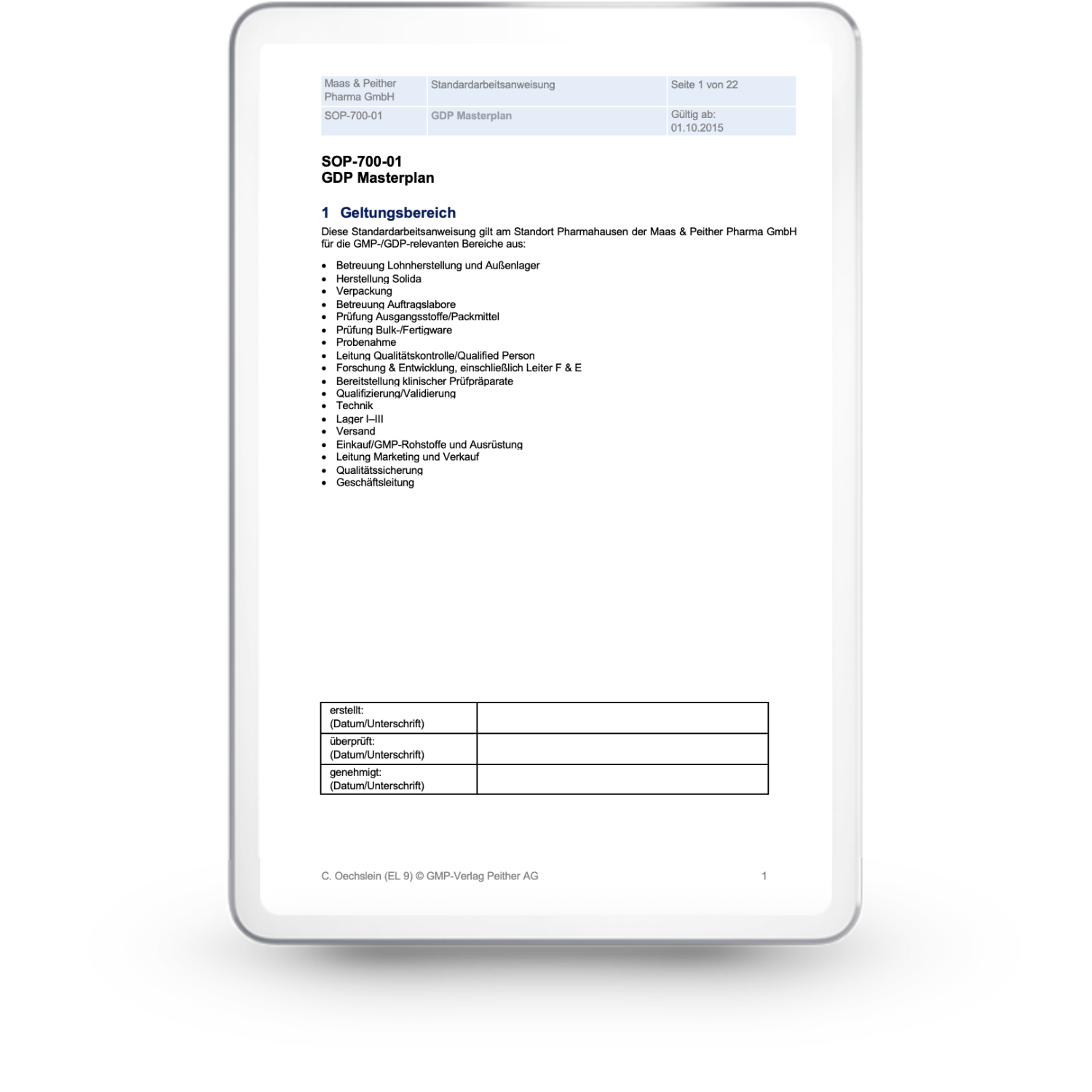 Bestandteil der SOP-Sammlung für die Pharmaindustrie