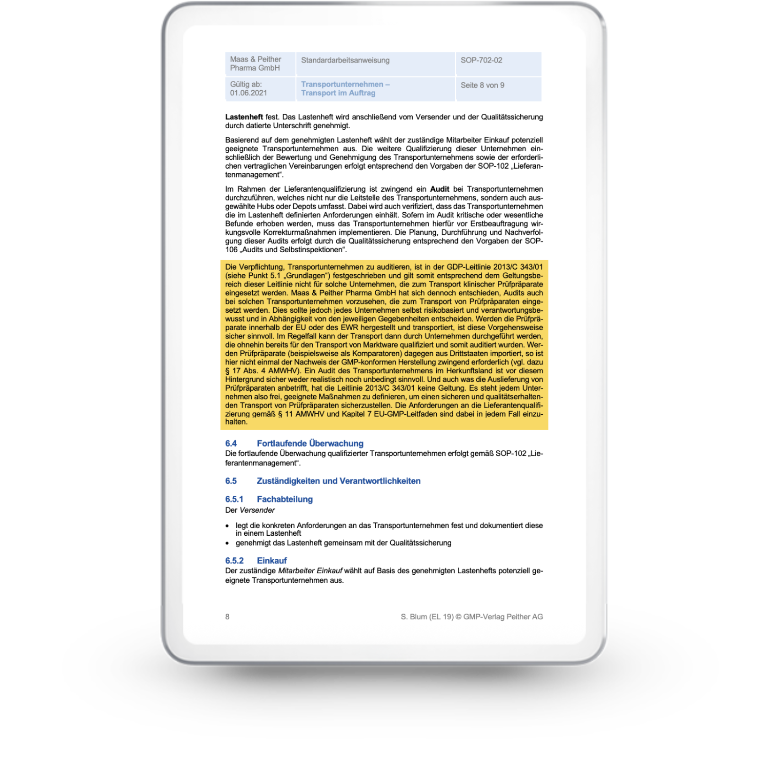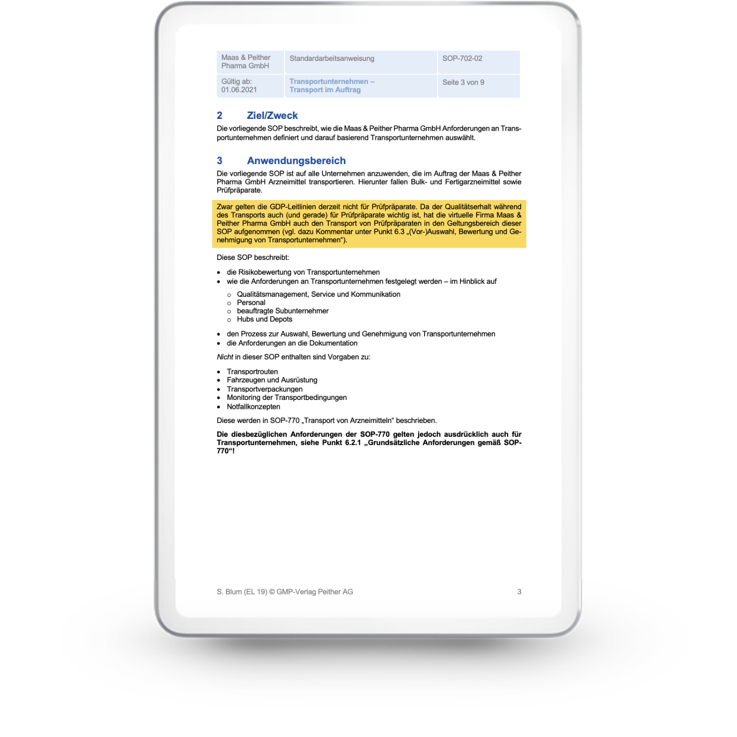 Bestandteil der SOP-Sammlung für die Pharmaindustrie