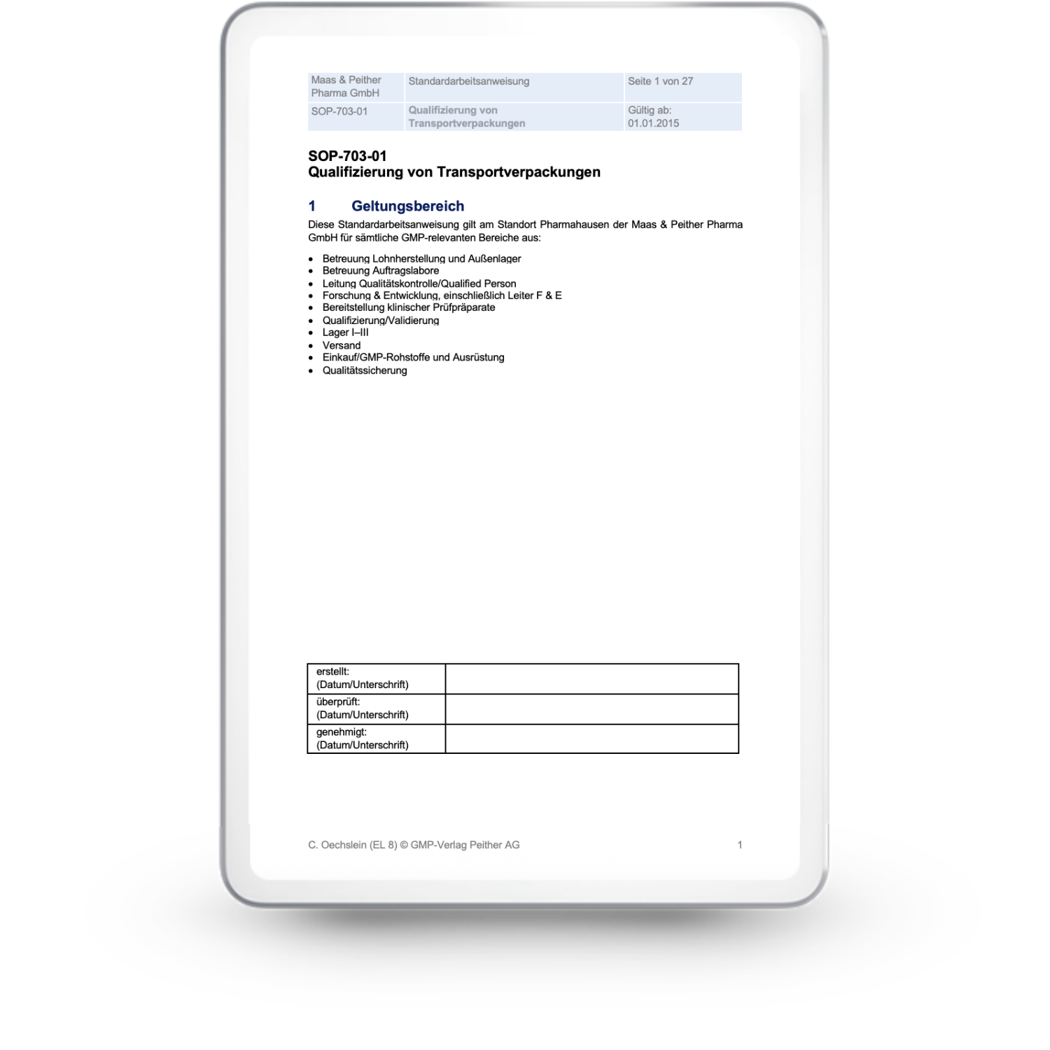 Bestandteil der SOP-Sammlung für die Pharmaindustrie