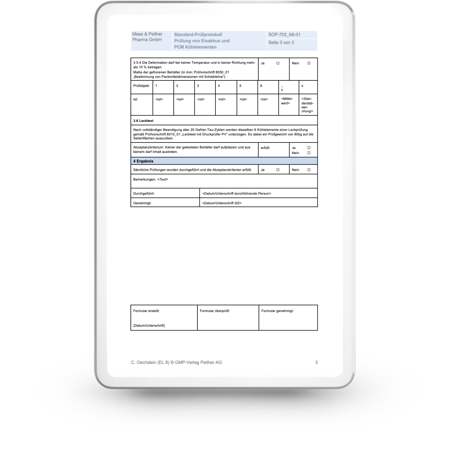 - Standard-Prüfprotokoll: Prüfung von Eisakkus und PCM-Kühlelementen