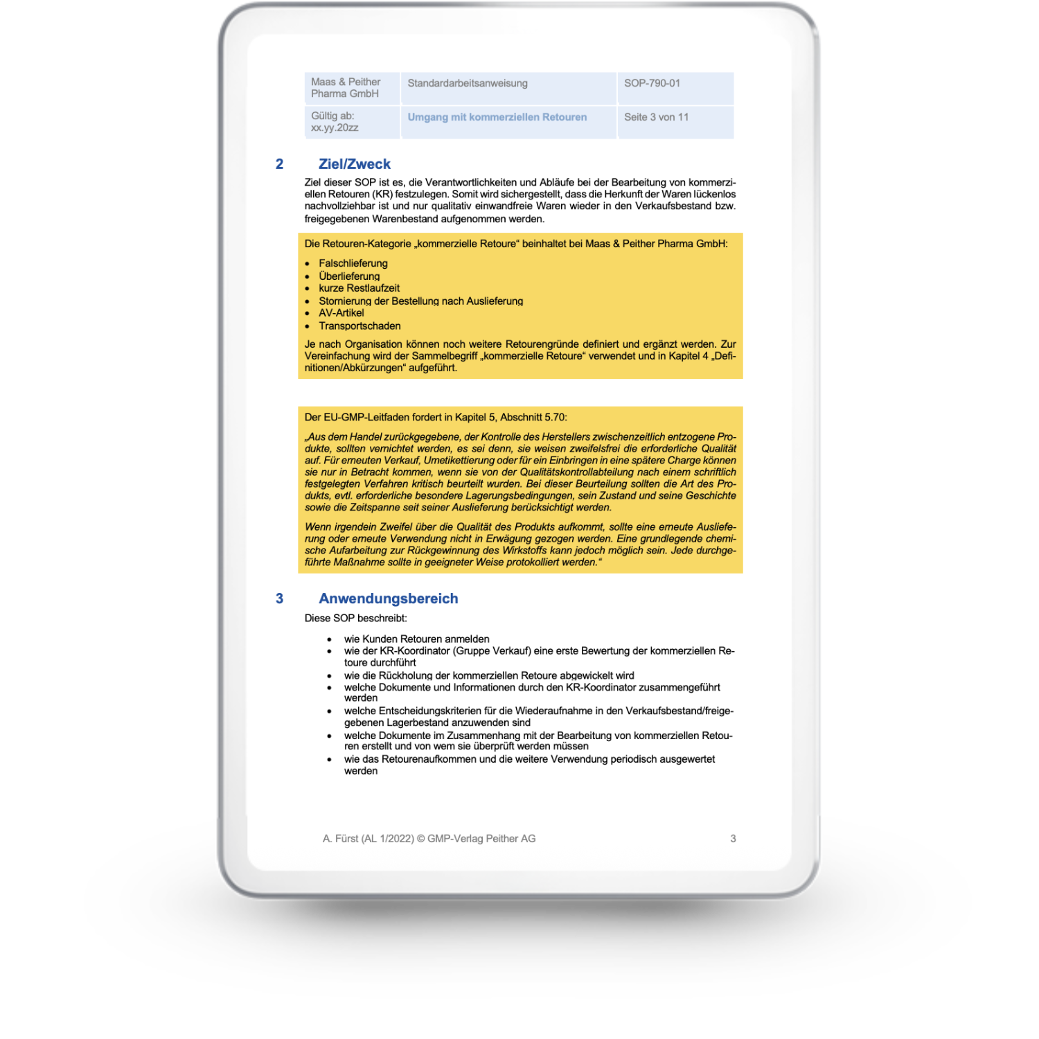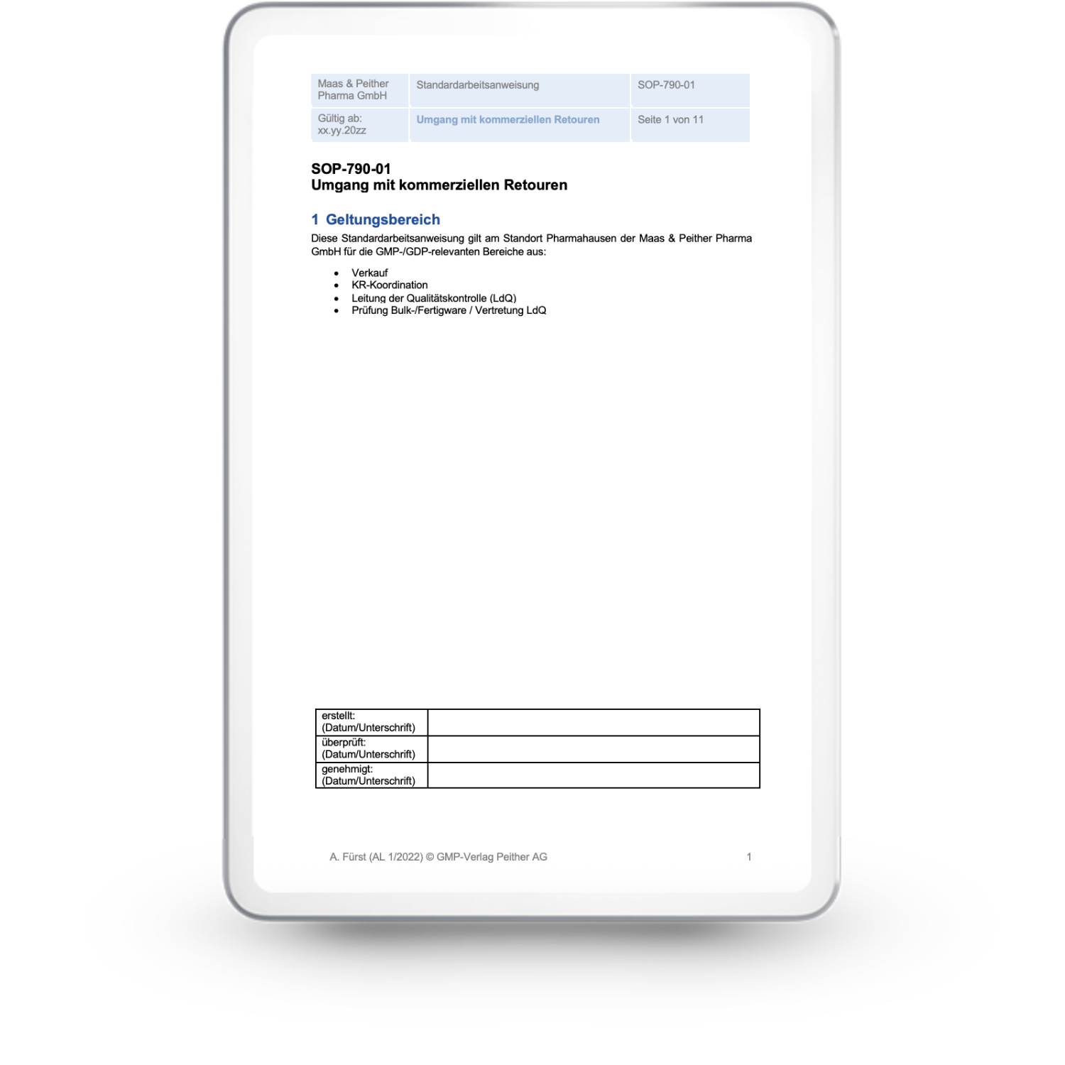 Bestandteil der SOP-Sammlung für die Pharmaindustrie