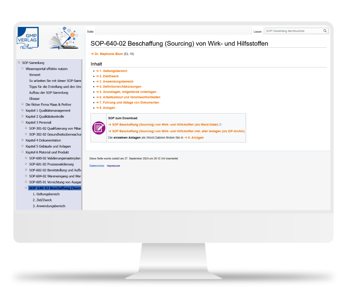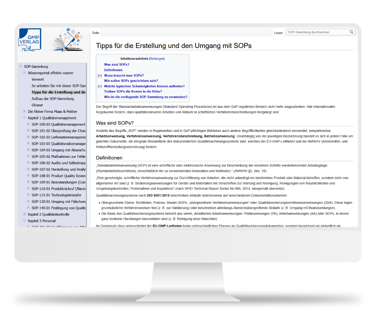 • Die SOPs berücksichtigen die aktuellen regulatorischen GMP-Anforderungen an die Herstellung von Arzneimitteln